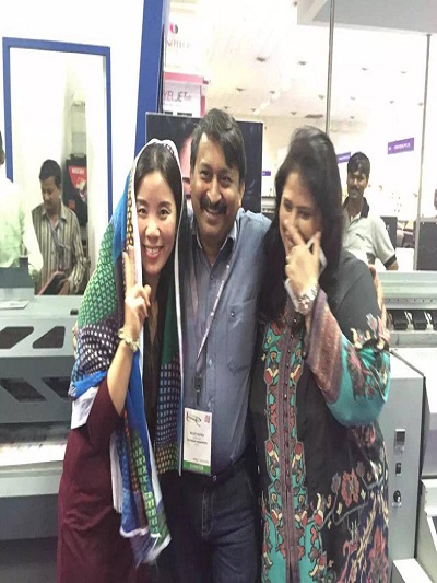 A lot of Indian visitors are so happy with a FREE gift of beautiful printed chiffon at the show.